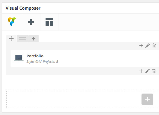 If you would like to set up a Portfolio Page, go to your WordPress Admin Area and navigate to Pages > Add New. Choose a title like "Portfolio" and select one of the "Default" templates in the Page Attributes. Switch to the Visual Composer by clicking the "Backend Editor" Button and add the Portfolio element. Make sure the Row Type is set to Full width. Click the Publish button. Now you can add Project items in Portfolio > Add New.