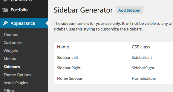 This premium Theme comes with three pre-defined sidebars / widget areas where you can drop your Widgets: Blog Widgets, Search Results Widgets & Footer Widgets, where you can drop your Widgets. You can also define custom sidebars for each page. To create custom sidebars, follow these steps: